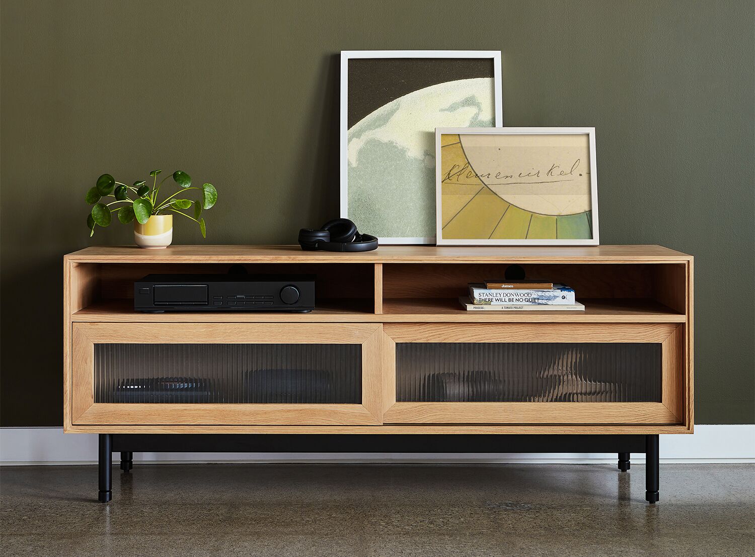 Le meuble multimédia Munro sur mesure est la scène idéale pour votre téléviseur, votre tourne-disque ou vos consoles. Les portes de verre cannelé coulissantes vous permettent d’admirer le contenu tout en maintenant une aura de mystère, et les ouvertures dans le panneau arrière permettent d’acheminer les câbles de votre équipement hi-fi sans qu’il y paraisse. Choisissez entre les couleurs Walnut ou Oak, chacune au fini mat sans COV appliqué à la main et soigneusement choisie pour mettre en valeur la beauté organique et unique du fil du bois. Avec son chant en bois massif et ses pattes en acier solides, le meuble multimédia Munro est fait pour durer, d’autant plus que son style classique minimaliste est indémodable.
