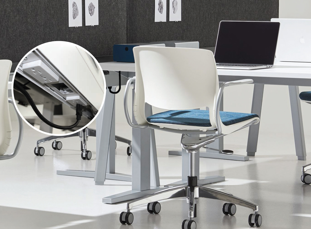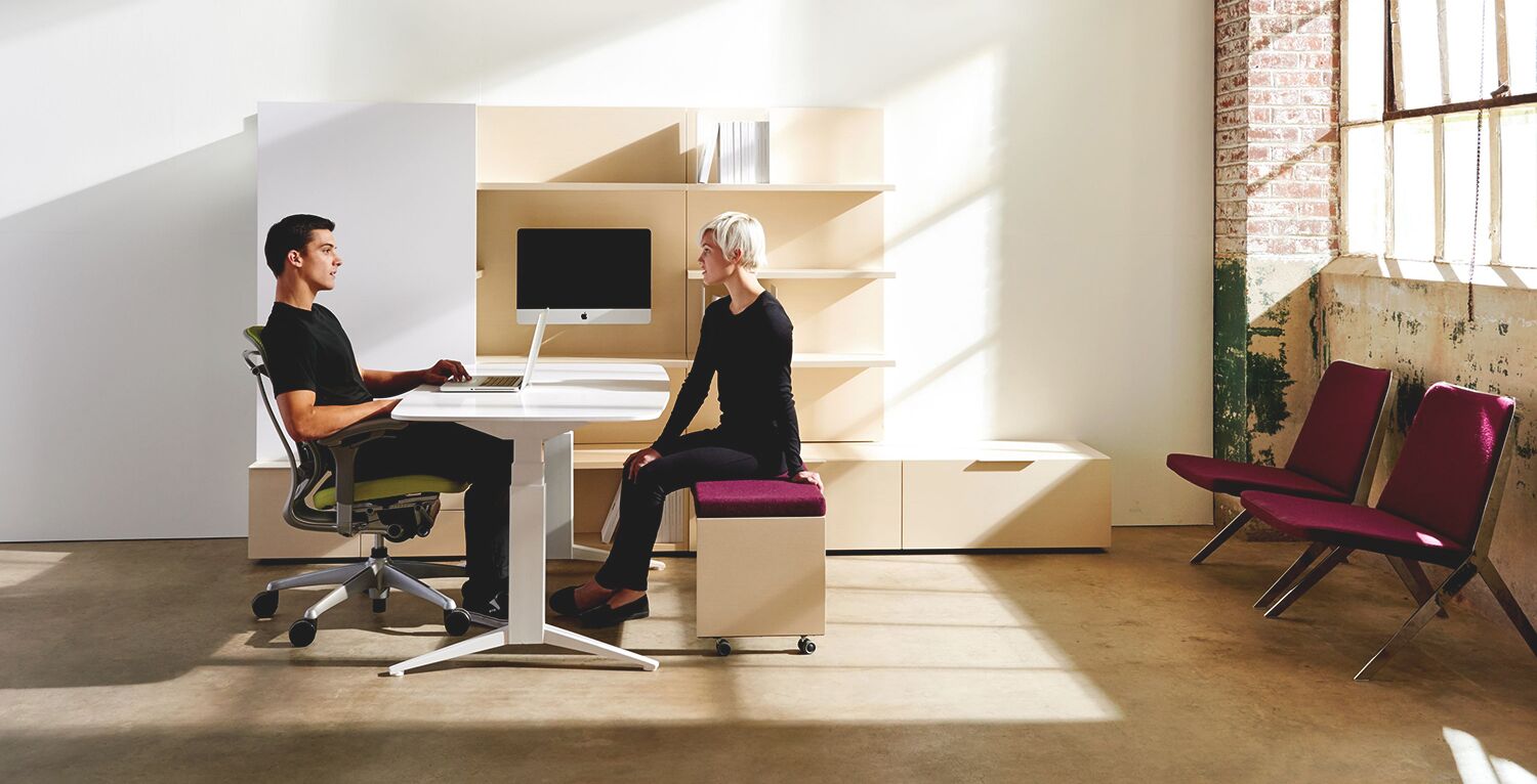 Afin de faciliter son intégration aux autres produits et aménagements, la table réglable en hauteur Journal est maintenant offerte dans tous les stratifiés Foundation standard (surface de travail avec chant plat) et toutes les peintures standard Teknion Foundation et Mica pour la base.