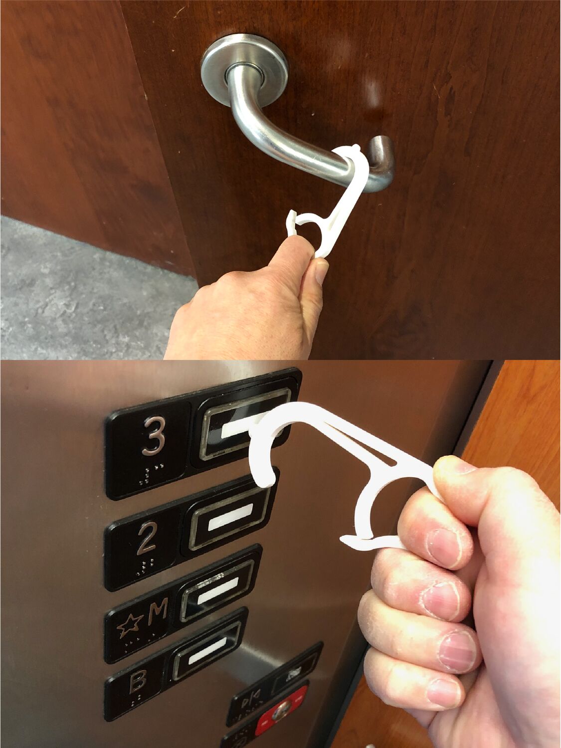 - Dispositif servant à ouvrir les portes et à appuyer sur les boutons d’ascenseur.