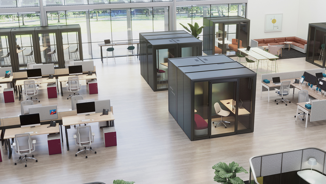 Tek Room, the newest addition to the POD series, is designed to support the individual or small groups when focus, privacy and comfort are needed from the open plan environment. Its universal approach to planning works with a wide variety of freestanding furniture and allows for easy reconfigurability.
