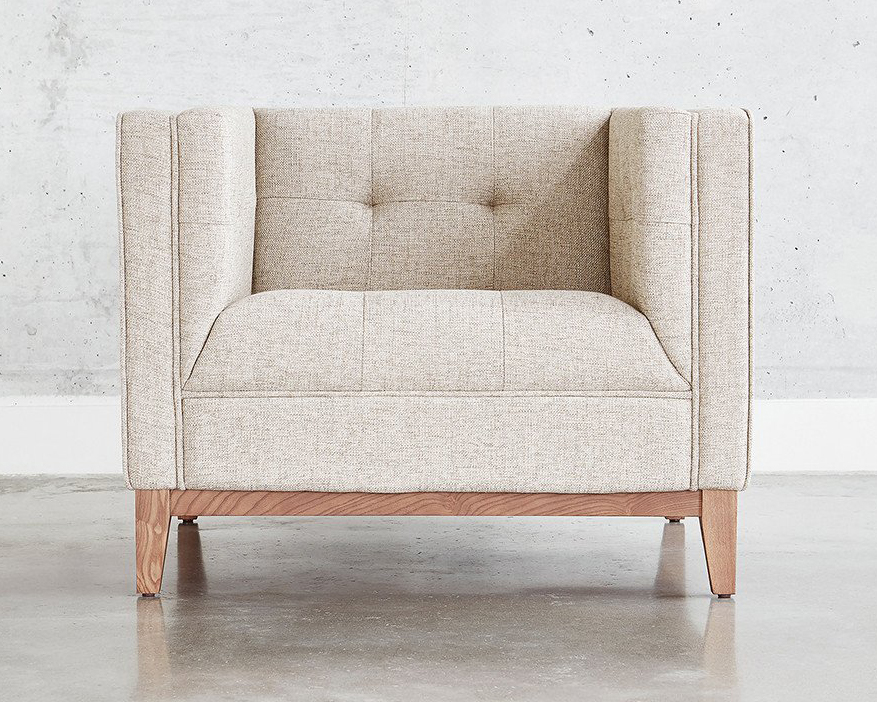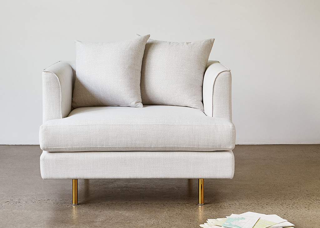 The Margot Chair epitomizes modern elegance with graceful arms, French-seam detailing, and loose, luxurious cushions to construct a look both contemporary and timeless. An extra wide seat makes it perfect for extended lounging with a good book.