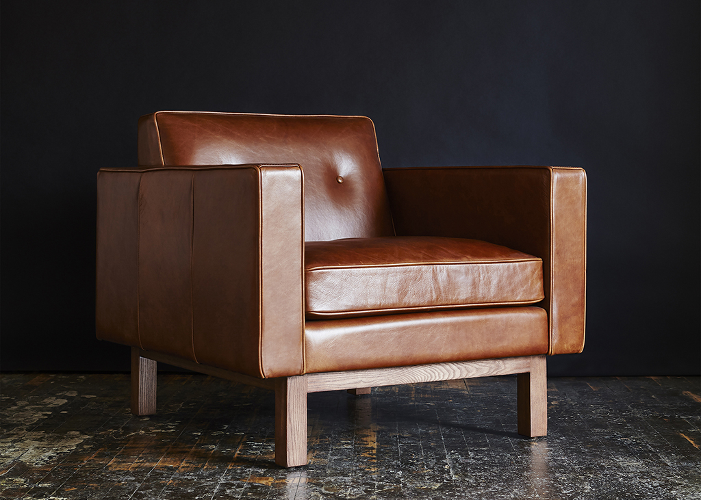 The Embassy Chair conveys a classic, mid-century style with tailored proportions and refined details. It features a button-tufted, tight back design with piping details throughout, and seat cushions filled with a luxurious feather blend. The frame is supported by a recessed, solid-wood base. Available in three vintage leathers, chosen for their unique grain characteristics that will age beautifully and develop a rich, natural patina over time.