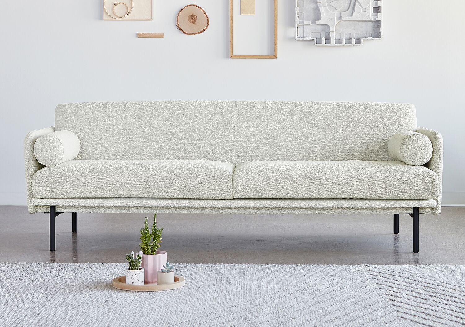 The Foundry Upholstery Series showcases tailored minimalism with details that elevate fashion and function to suit any residential or commercial setting. Inspired by elements of classic Scandinavian design, the Foundry Sofa offers ample sophistication as a standalone piece, showcasing striking lines, an extra slender tightback frame and seat cushions that seem to float above elevated, cylindrical steel legs. Two bolsters on the sofa offer additional style and comfort, while the sturdy, steel reinforced FSC®-Certified frame ensures that Foundry holds up in high-traffic environments.