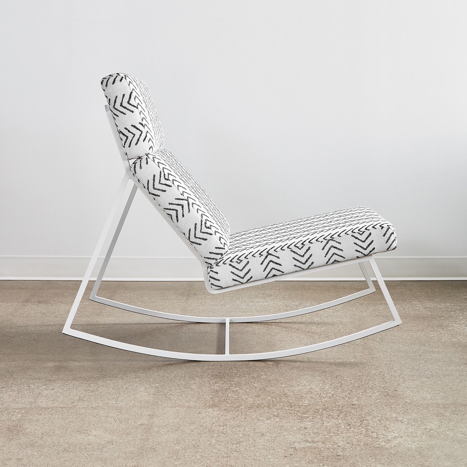 The Gus* version of the perfect modern rocking chair; featuring a powder coated frame with architecturally-styled cushions inspired by airport lounge seating and 70's car interiors.