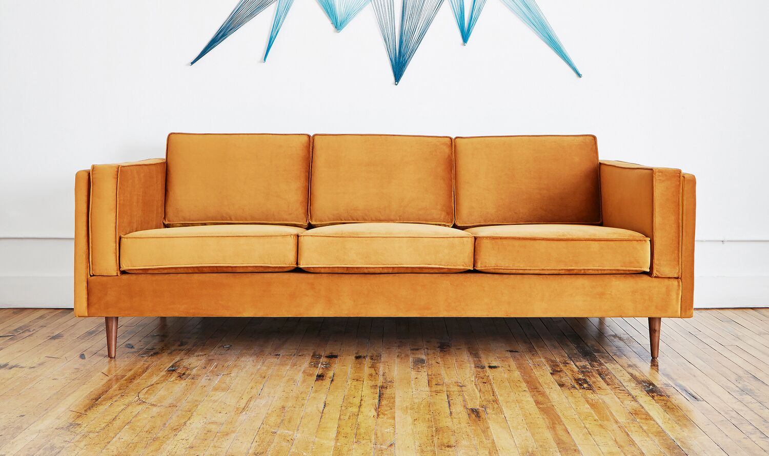 The Adelaide Sofa is a classic club sofa frame that harkens back to Mid-century archetypes. Structured side cushions lend a vintage look, and provide added comfort. The solid, tapered-wood legs can be easily removed and reattached, allowing this sofa to fit through tight spaces.