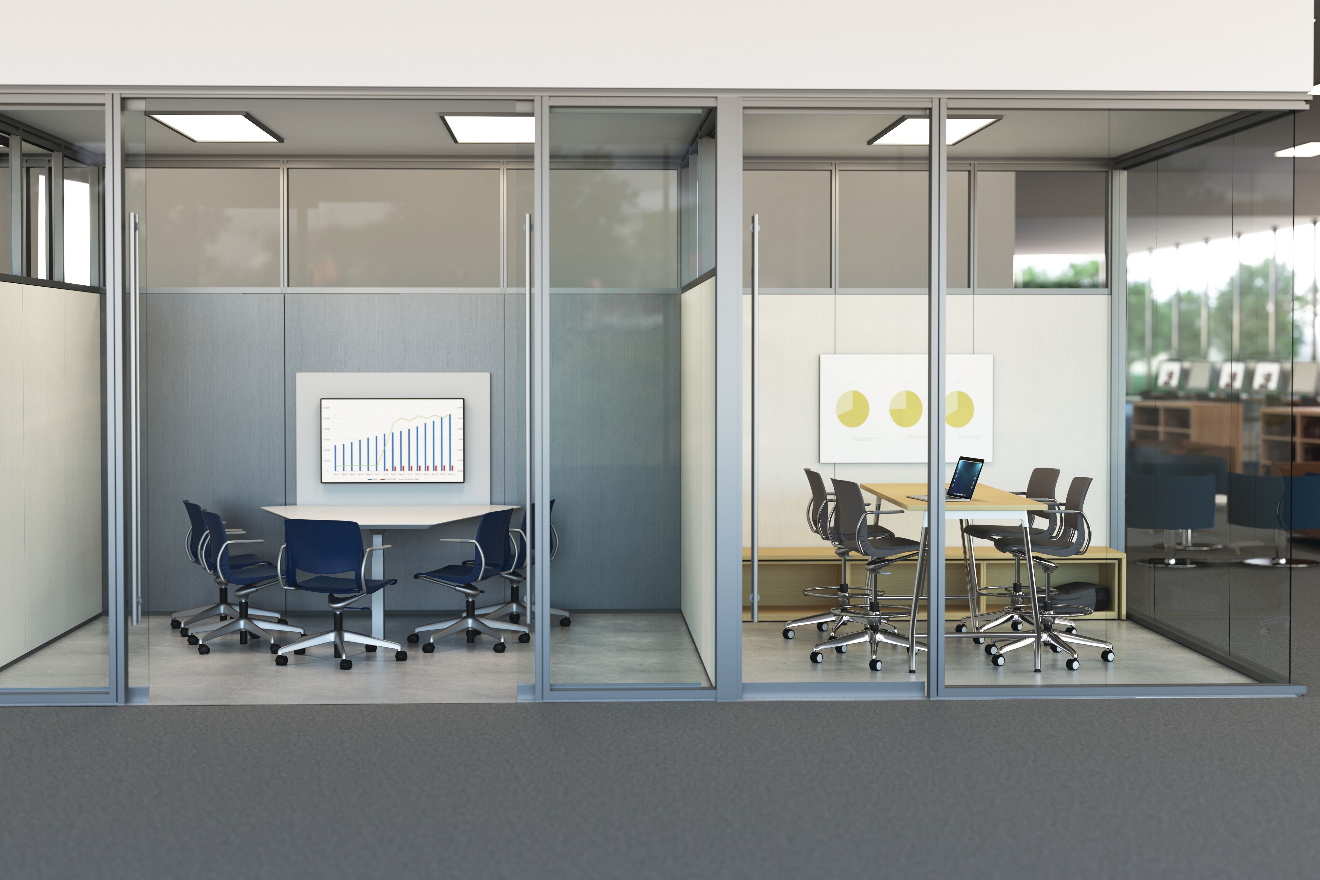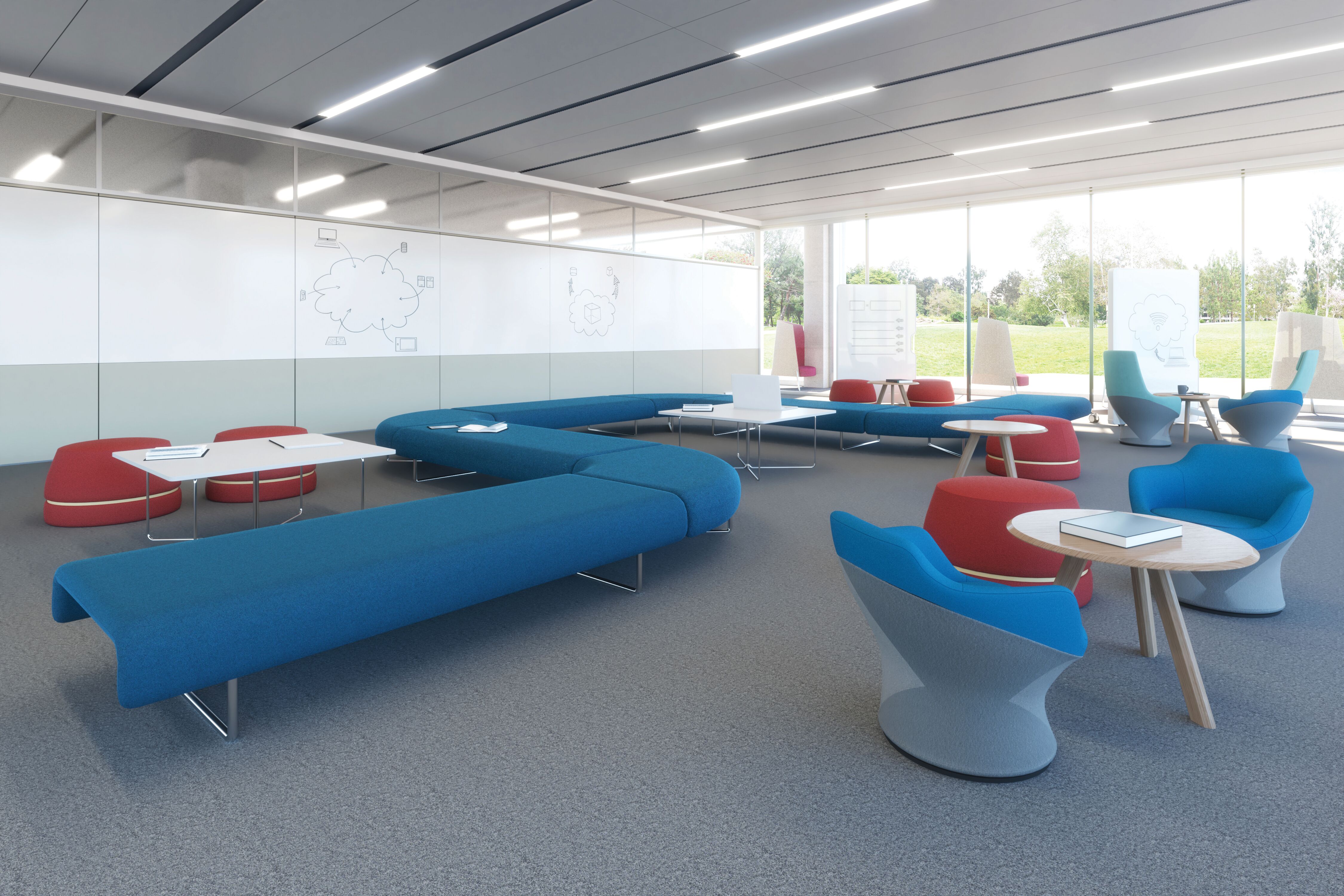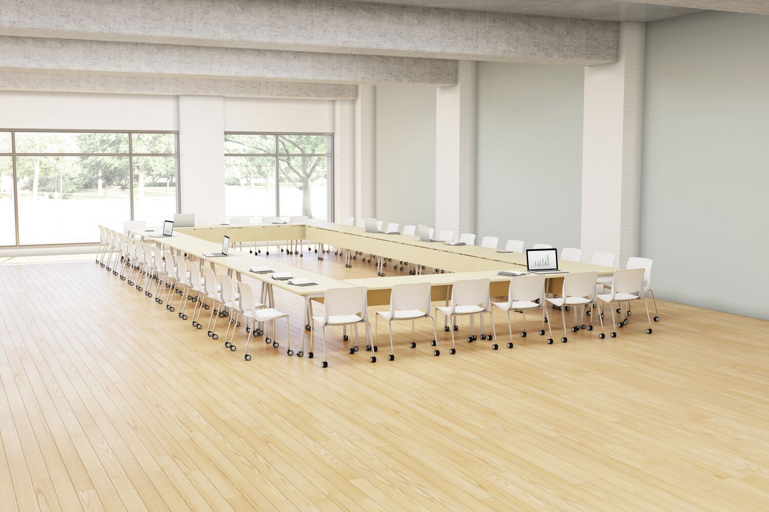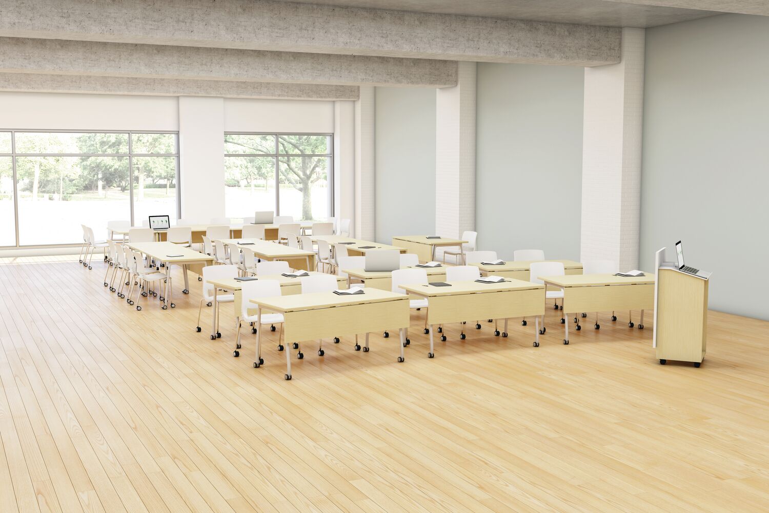 Within the library, space must often serve a variety of programmatic needs: seminars and colloquiums, readings, social events and student, staff or faculty meetings. Furnished with lightweight, mobile tables and chairs, a room frequently used for faculty meetings can be quickly reconfigured for an academic conference or a reception for a distinguished visitor. These spaces can also be used by student organizations as a place to plan campus events and activities. Flip-top tables, nesting tables and stacking chairs are easy to move around or to store, while lounge furniture and café height tables contribute to comfort and ease.