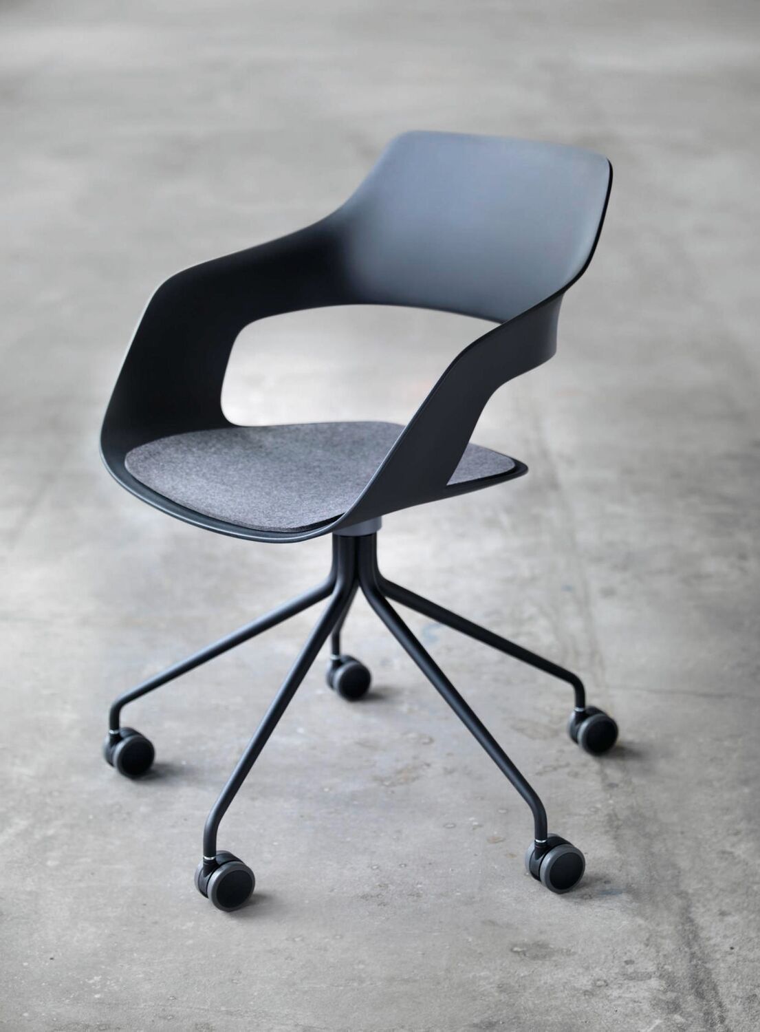 Designed by Jehs+Laub, the collection combines versatility and a selection of design options with a clear and immediately identifiable design language. Chair base options include four metal legs or a dynamic five-star base on casters. Legs are finished in Black, Cool Grey or White. Optional plastic shell colors and an optional upholstered seat pad or fully upholstered shell interior are available.
